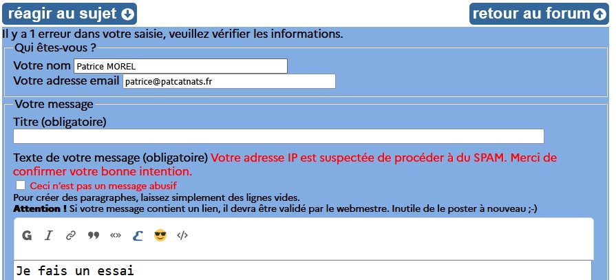 Lors de l’envoi le Titre ne s’efface plus, mais on me demande toujours de cocher la case "Ceci n’est pas un message abusif".